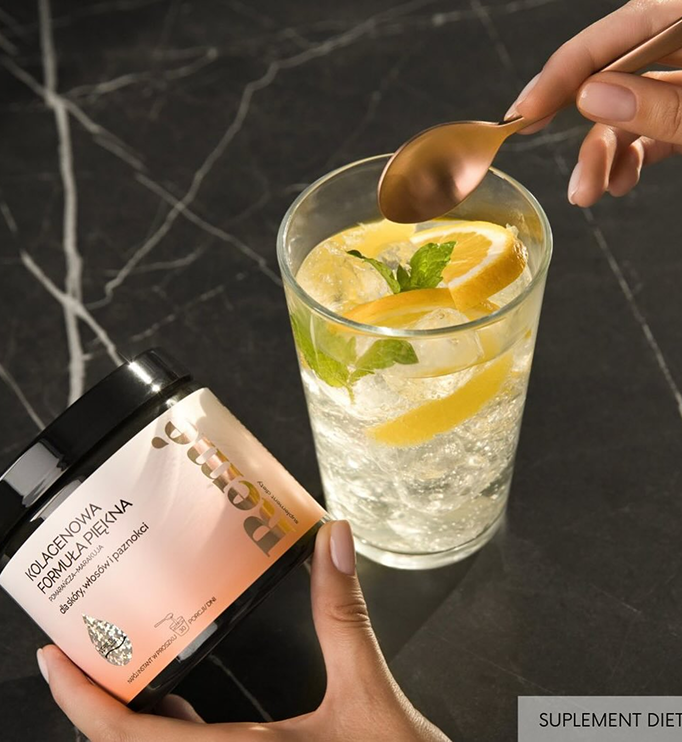 Po ukończeniu 20 roku życia, ilość kolagenu typu I w skórze ulega zmniejszeniu – o około 1% rocznie. Kolagen można suplementować, ale ważna jest jego forma, która determinuje jego biodostępność (w uproszczeniu wchłanialność). Remé to kompleksowa kolagenowa formuła piękna na skórę, włosy i paznokcie. Zawiera w swoim składzie opatentowane peptydy kolagenowe VERISOL®, których skuteczność działania została potwierdzona badaniami klinicznymi. Dodatkowo witamina A, tak zwany Retinol A, czy tez witaminy z grupy B, B2, B3, B7, a także jod pomagają zachować zdrową skórę. Remé występuje w 3 smakach, w postaci proszku, który rozpuszcza się w wodzie lub w soku, smoothie, a nawet w kawie czy owsiance – oczywiście niezbyt gorących, przestudzonych.