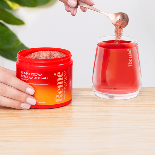 Ekstrakt z czerwonych pomarańczy to częsty składnik suplementów, które poprawiają stan skóry od środka. Możesz przyjmować go w formie kapsułek, płynu albo rozpuszczalnego proszku, który możesz dodać do wody, kawy czy smoothie.